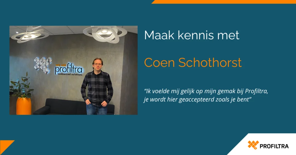 He’s been working at Profiltra as a Customer Relations Employee since last year. “I immediately felt comfortable at Profiltra,” says Coen, describing his first impressions of the company. “You’re accepted here for who you are, and that appeals to me,” he continues.