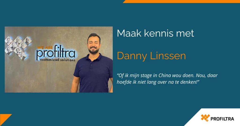For his International Business Management studies at the IVA, he and three other students participated in a co-makership program at our company. “Then Edwin Cobussen (owner of Profiltra) approached me to see if I wanted to do an internship at Profiltra’s Chinese branch in Nanjing. I didn’t have to think twice,” says Danny. “What an opportunity, I’d love to!” He spent almost six months conducting market research in China for our Pipeline Technology and Sealing Engineering departments. “Over 10 million people in Nanjing, and almost no one speaks English.” Danny can laugh about it now, but it was a bit of an adjustment for a youngster in that cosmopolitan city. One minute you’re living at home with your parents, the next you get the key to your apartment in Nanjing, and you have to fend for yourself. It was a fantastic learning experience, and a lifetime of learning.