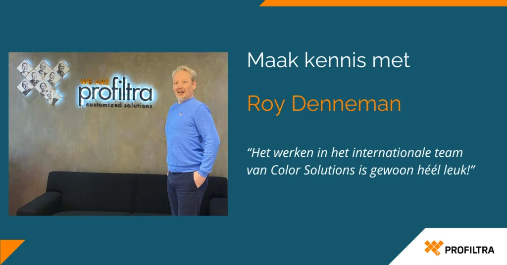 When asked what makes his job so interesting, he enthusiastically replies, “The international aspect of it, contact with European and Asian colleagues and foreign clients—that’s something I’ve always really enjoyed.” It’s clear that Roy thrives in the international team at Color Solutions. “Working in the team is simply great fun,” he says, “and Profiltra is a true family business, where the social aspect is very important. They organize fun team events and company outings year-round, so in short, I really like it here.”